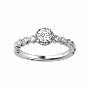 メインの石の脇に0.02ct前後の小さなサイドストーンとして宝石を添えたデザイン。色付きのメレダイヤをあしらって、メインのダイヤを引き立てるなど、可憐でかわいらしい印象になります。