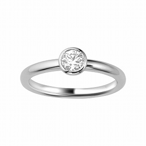 メインの石を爪なしでアームに埋め込む、あるいはフクリン留めなど、立て爪以外の方法で一粒石を留めたデザインです。凹凸が少ないセッティングのため、シーンを選ばす着けることができるので日常使いに適しています。