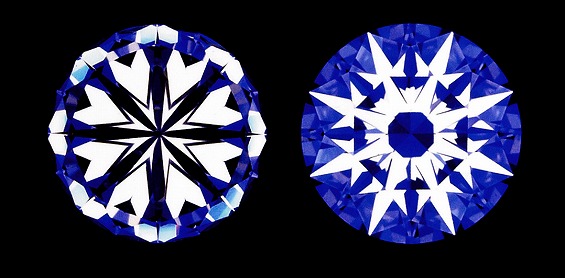 ハート&キューピッド(HEART & CUPID)とは、優れたカッティング技術で磨かれたダイヤモンドを、専用のスコープで見たときに浮かび上がる8つのハート型と8本の矢のように見える模様のこと。