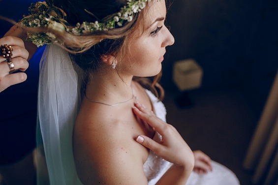 ヘアメイクをしてもらっているシーンは表情に変化が出やすいため、自然な花嫁の表情を写すことができます。鏡を利用した写真なども印象的です。