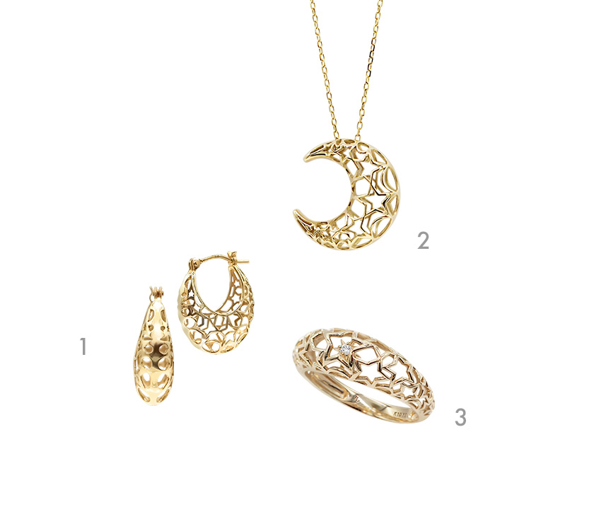 軽やかな透かし模様のなかに、たくさんのスターを描いたジュエリー。