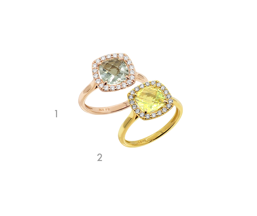 アマービレ コレクション19/K18ピンクゴールド グリーンクオーツ リング・K18イエローゴールド レモンクオーツ リング