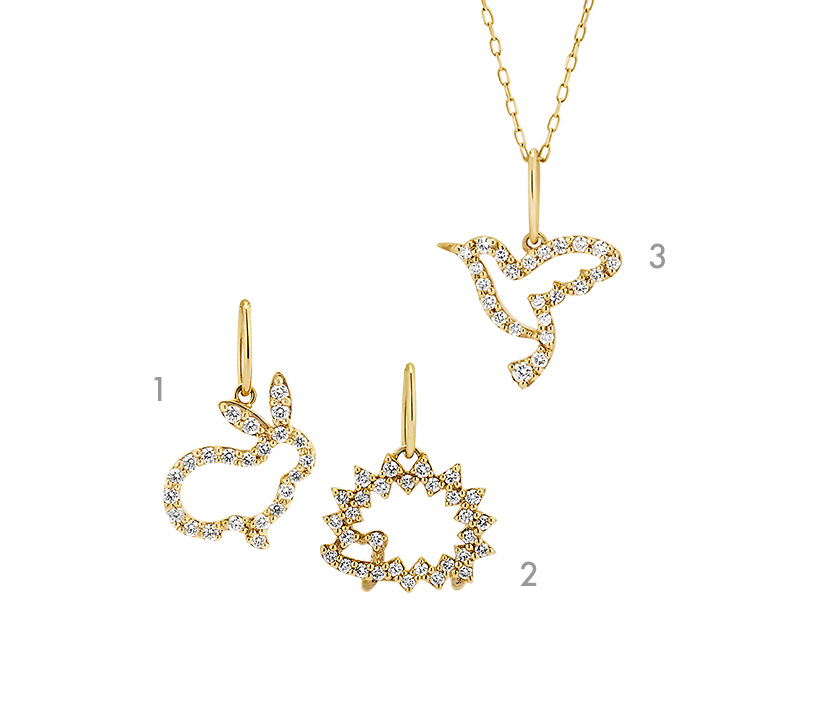 アミケッティ06/K10イエローゴールド ダイヤモンド チャーム(小鳥 うさぎ ハリネズミ)