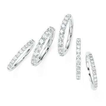 PURE PLATINUM 999の、ハーフエタニティリング「PURE 10(ピュアテン)」。結婚10周年などの大切な記念日にふさわしいジュエリーです。