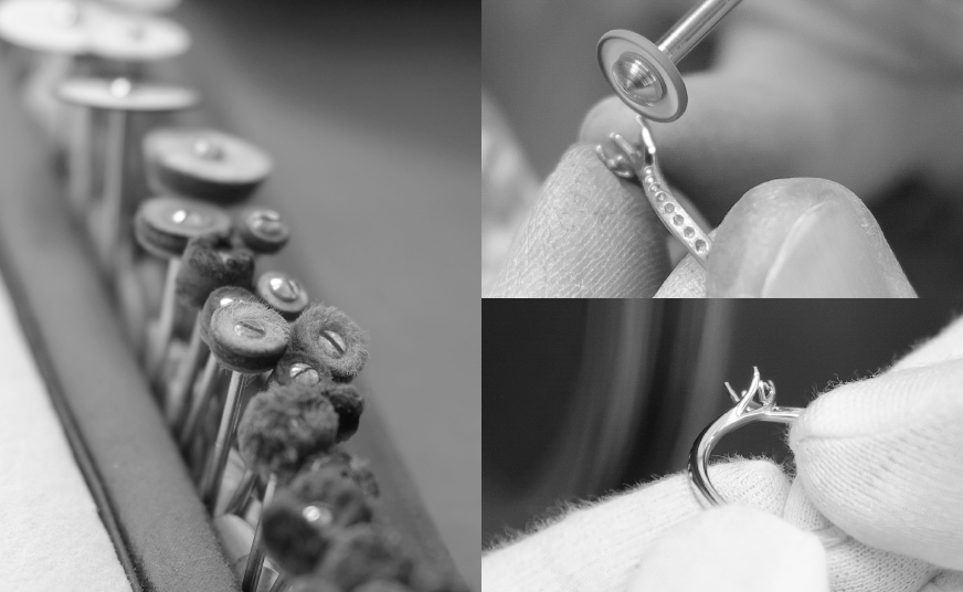 プラチナは純度が高いほど、光りやすいように思われがちですが、実はその逆。より光を吸収しやすいため、これを完璧に磨きあげるには気の遠くなるような精緻な作業を繰り返さなければなりません。