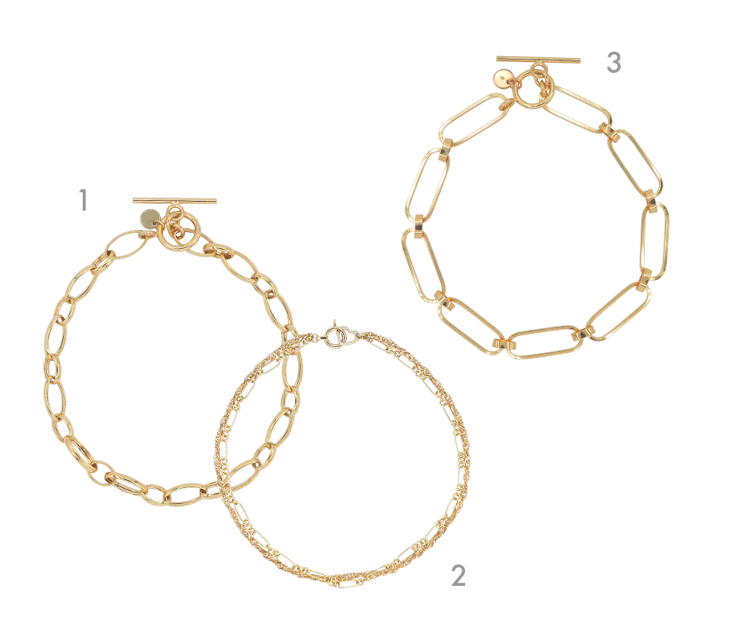程よい存在感のチェーンが目を引くブレスレットコレクション。カジュアルなスタイルにアクセントを添えるアイテムとしてもおすすめです。