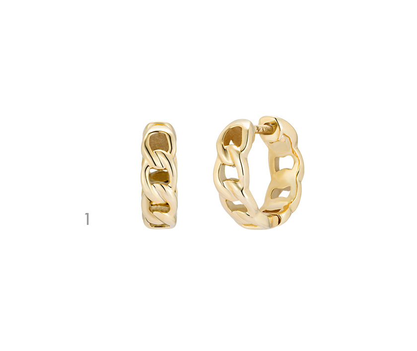 キャッチレスで着けやすい、チェーンモチーフのフープピアス。ゴールドの艶めきが装いのアクセントになり、上品な印象を与えます。