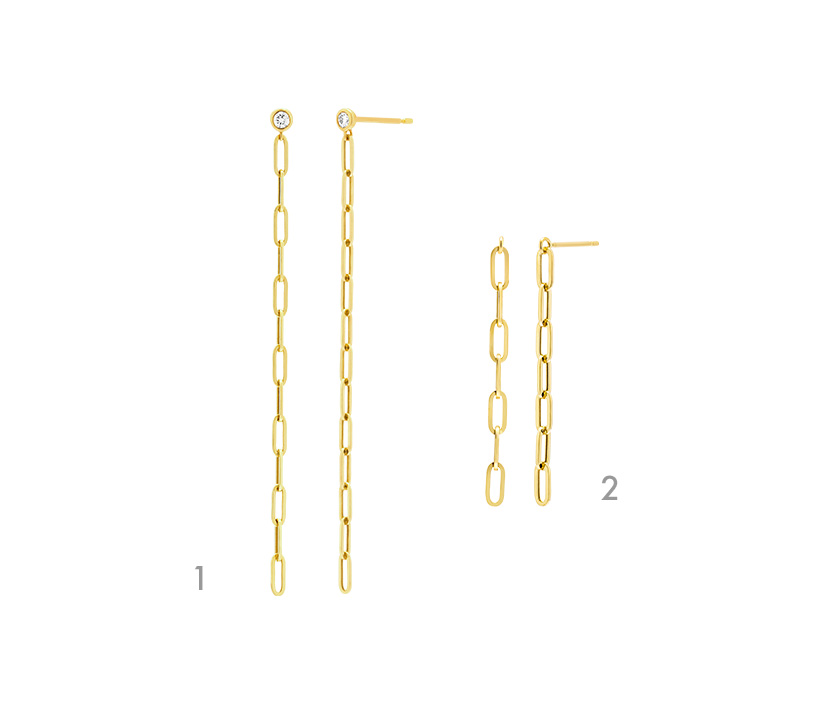 揺れ感が美しい、クリップチェーンのロングピアス。ゴールドの艶めきが、顔周りを華やかに彩ります。